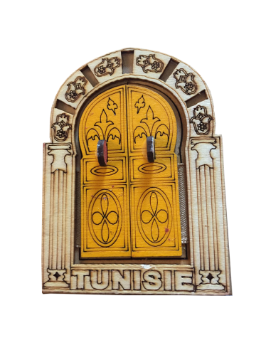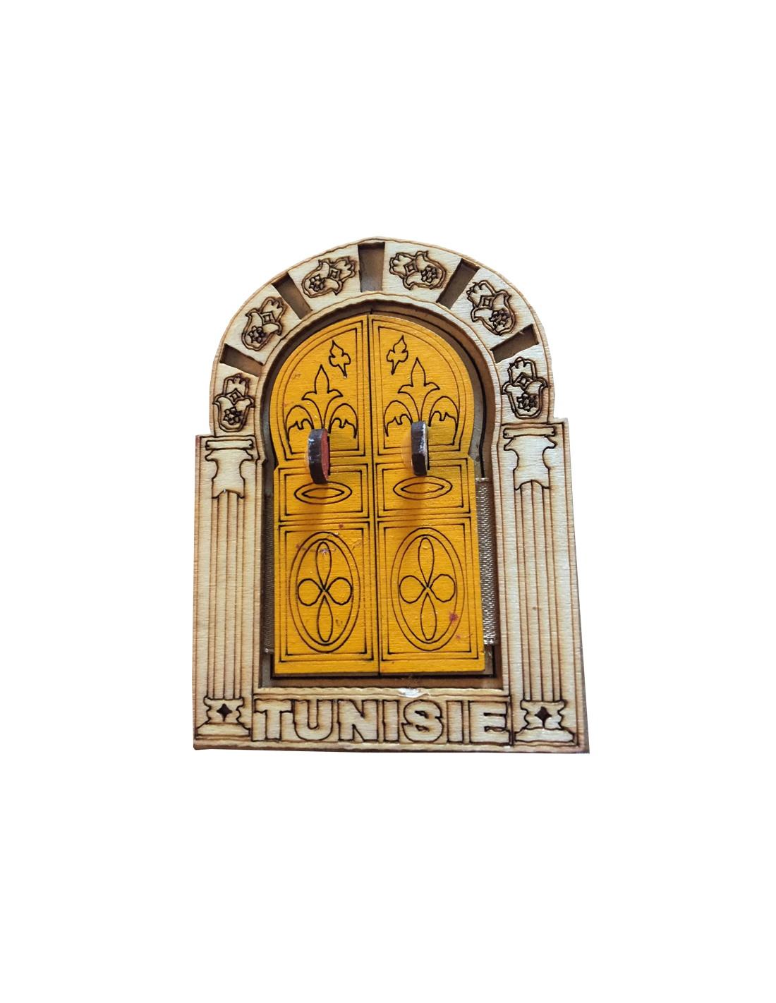 Ajoutez une touche d’exotisme à votre décoration avec cet aimant en bois représentant une porte traditionnelle Tunisienne. Finement gravé et peint à la main, ce magnet incarne l’architecture typique des médinas Tunisiennes.