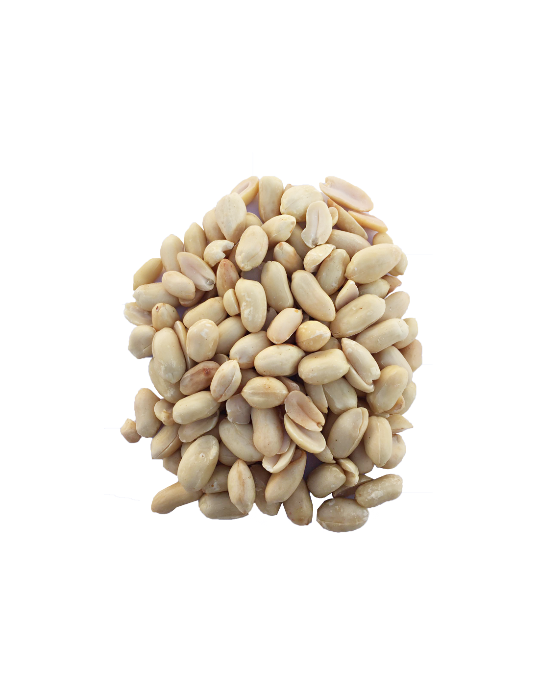 Cacahuètes entières blanchies sans peau, crues, non salées.