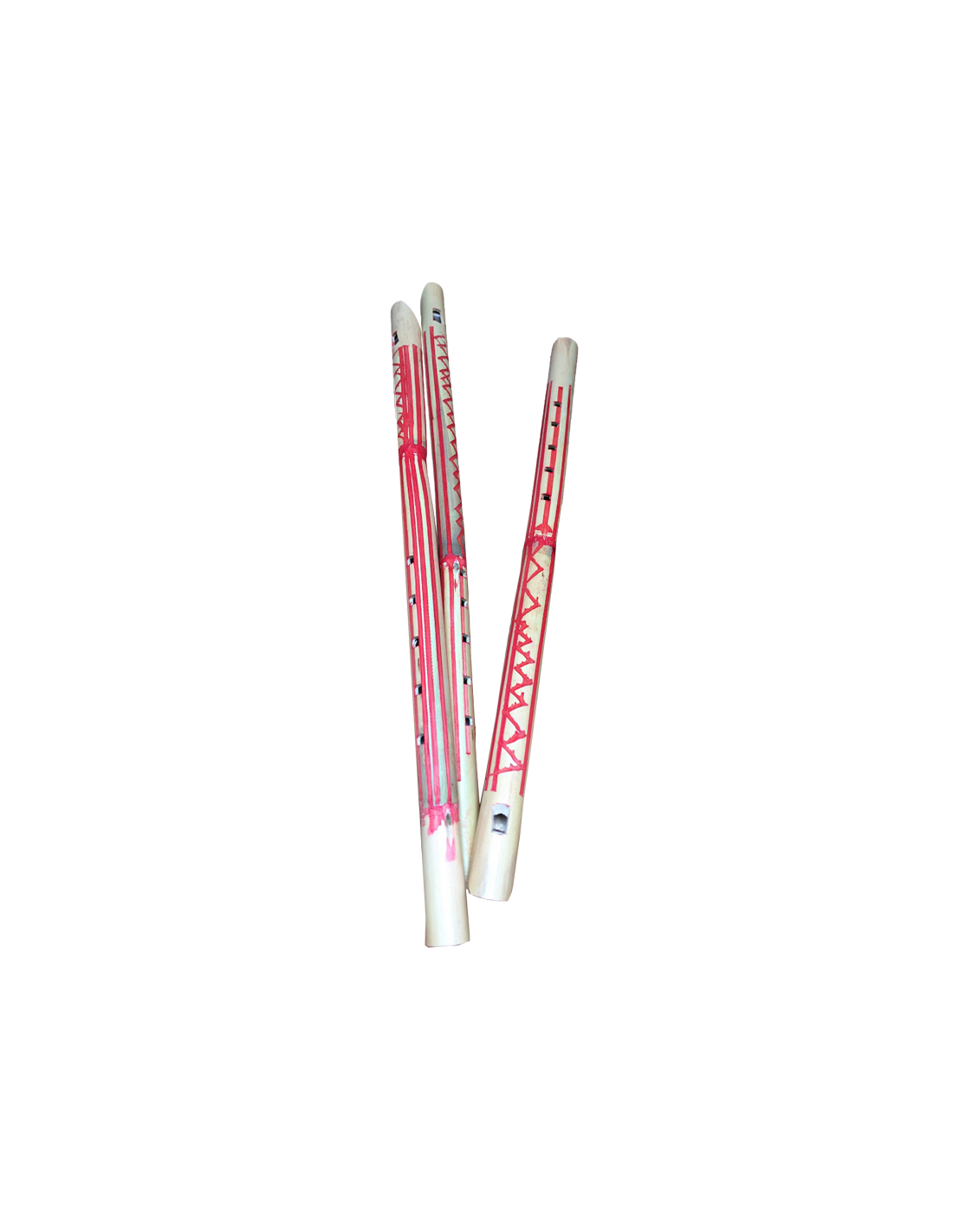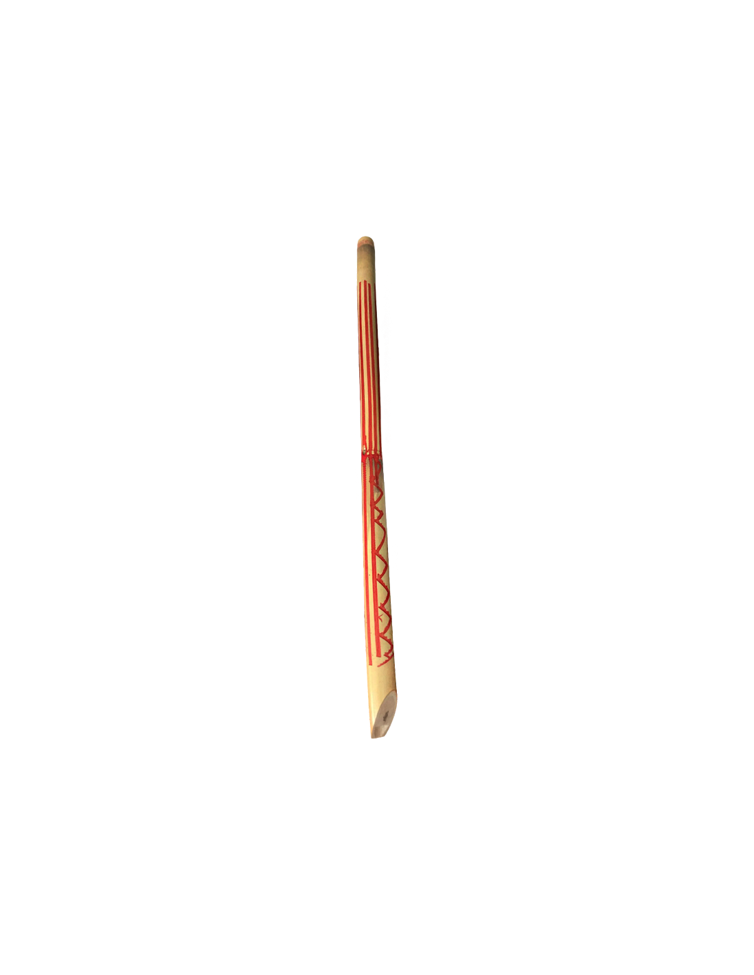 Ornée de motifs rouges géométriques peints à la main, cette flûte est à la fois un instrument de musique et un objet décoratif raffiné. Chaque pièce est unique, avec ses légères variations naturelles qui ajoutent à son charme.