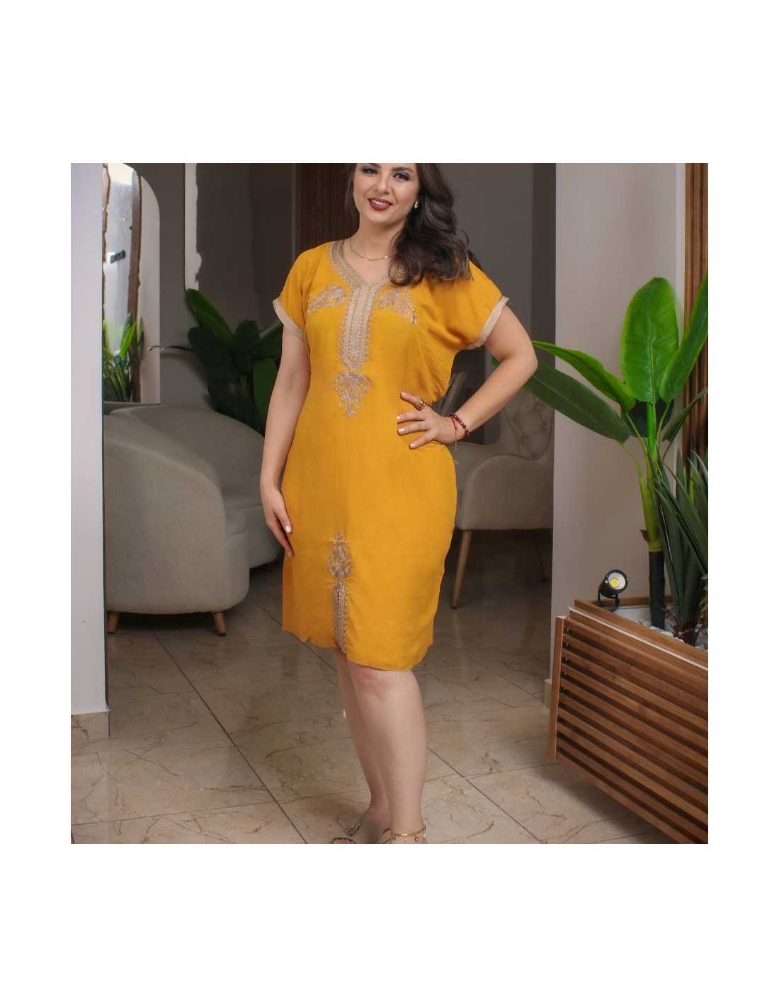 Laissez-vous séduire par l’élégance naturelle de la Jebba Moutarde à Broderies Beige foncé, une création à la fois moderne, légère et pleine de charme tunisien.