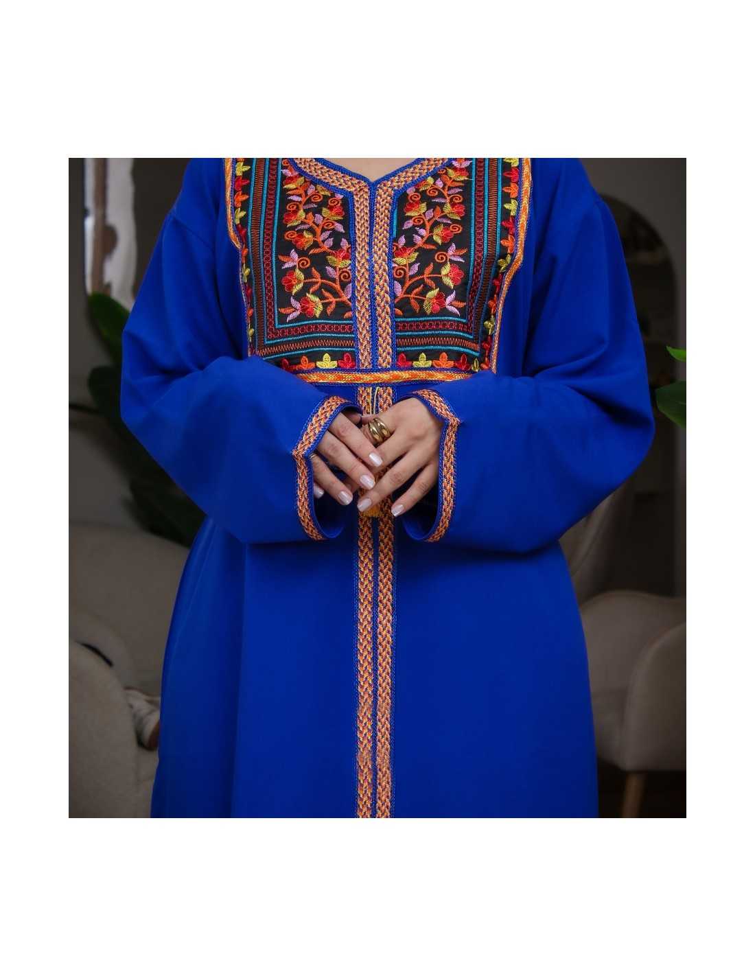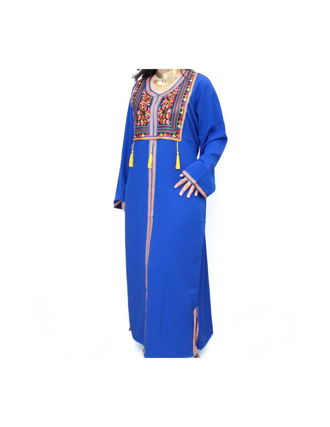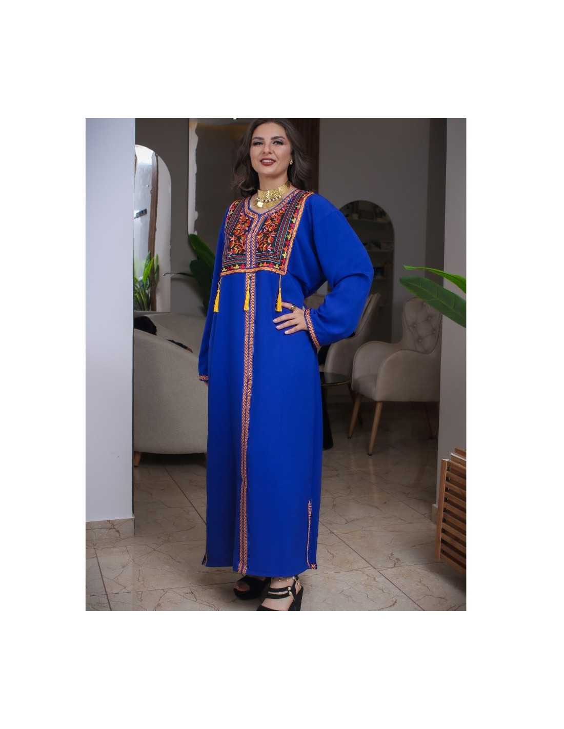 Sublimez votre allure avec cette jebba bleue aux broderies raffinées. Une pièce unique qui marie le charme de l’artisanat tunisien et la modernité. Taille standard.