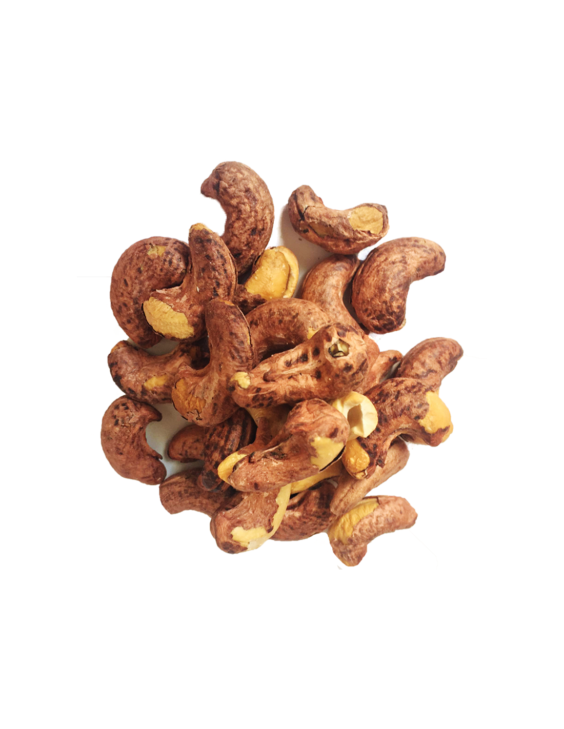 Les noix de cajou grillées avec la peau sont une collation croquante et savoureuse, offrant une texture plus robuste et une saveur plus prononcée que les noix de cajou classiques.