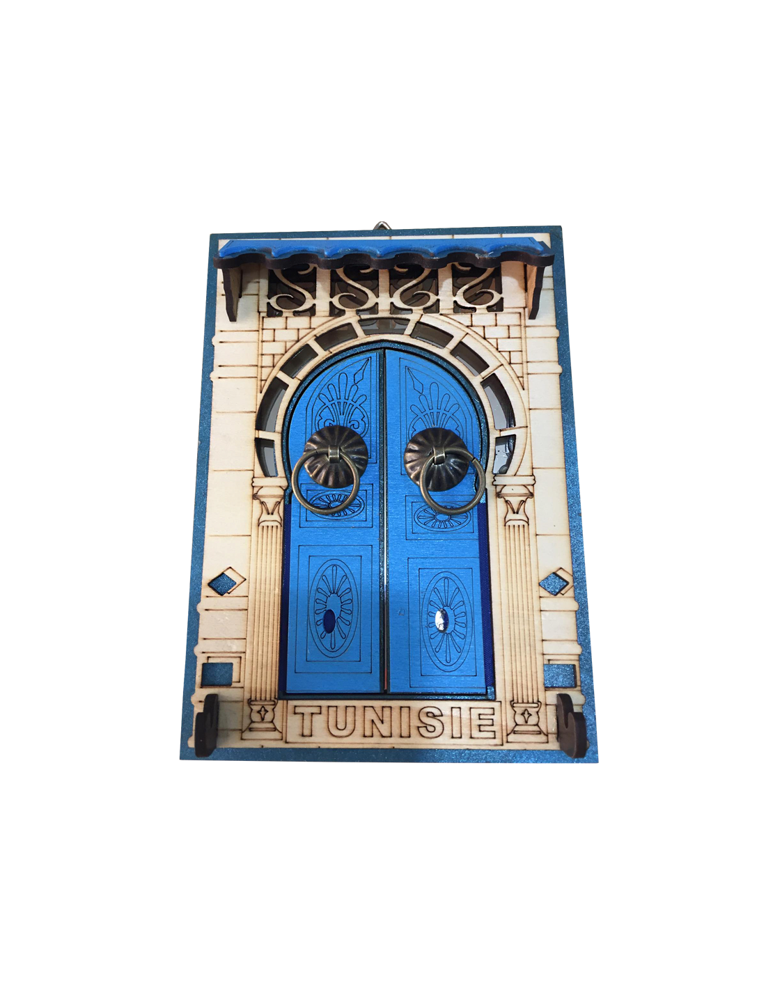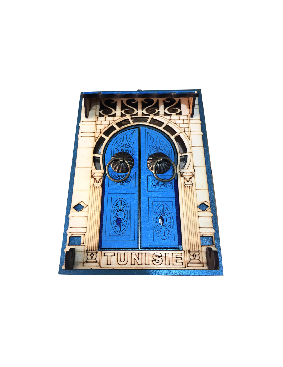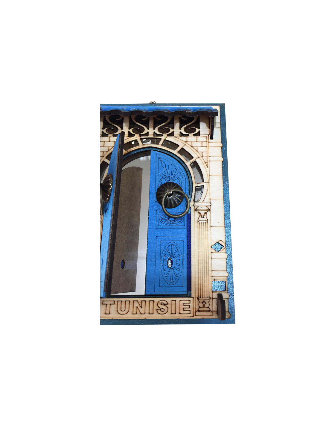Inspiré des portes emblématiques de Sidi Bou Saïd, ce cadre en forme de porte tunisienne incarne tout le charme et l’authenticité de l’architecture traditionnelle du pays.